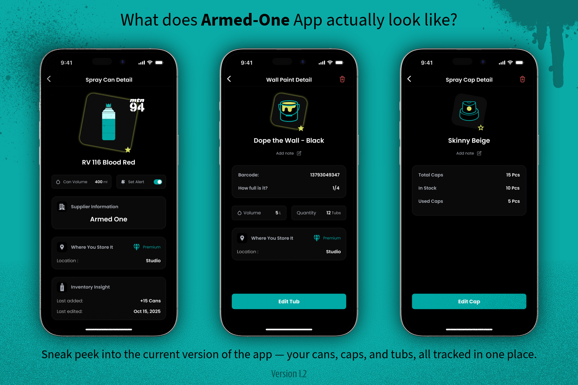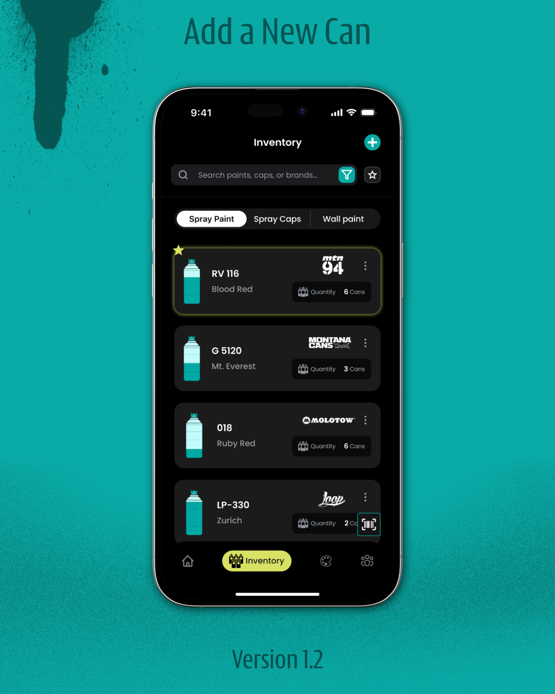 Track your spray paint inventory — know exactly what you’ve got before you headout.